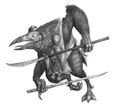 Oskarasu tengu: com o corpo humanóide, e com uma cabeça de corvo.